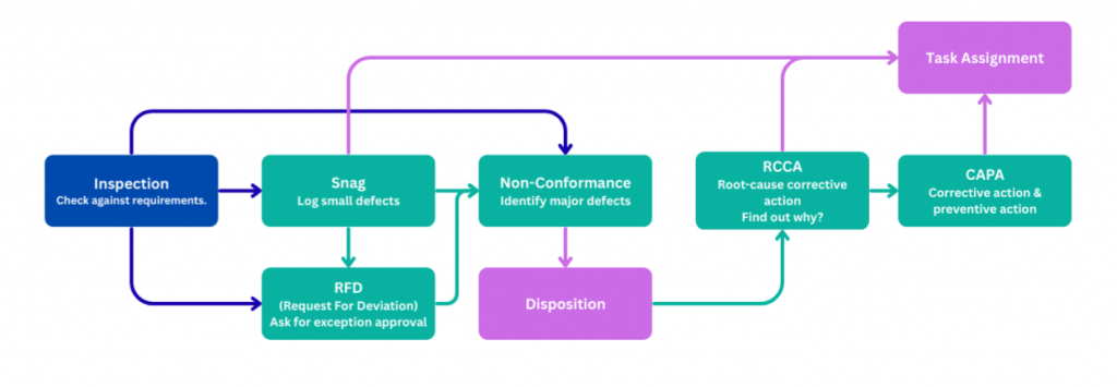 Quality control is often misunderstood as “inspection at the end.” In reality, effective QC is a connected workflow; one that starts with inspection and continues through issue tracking, decision-making, corrective action, and accountability.