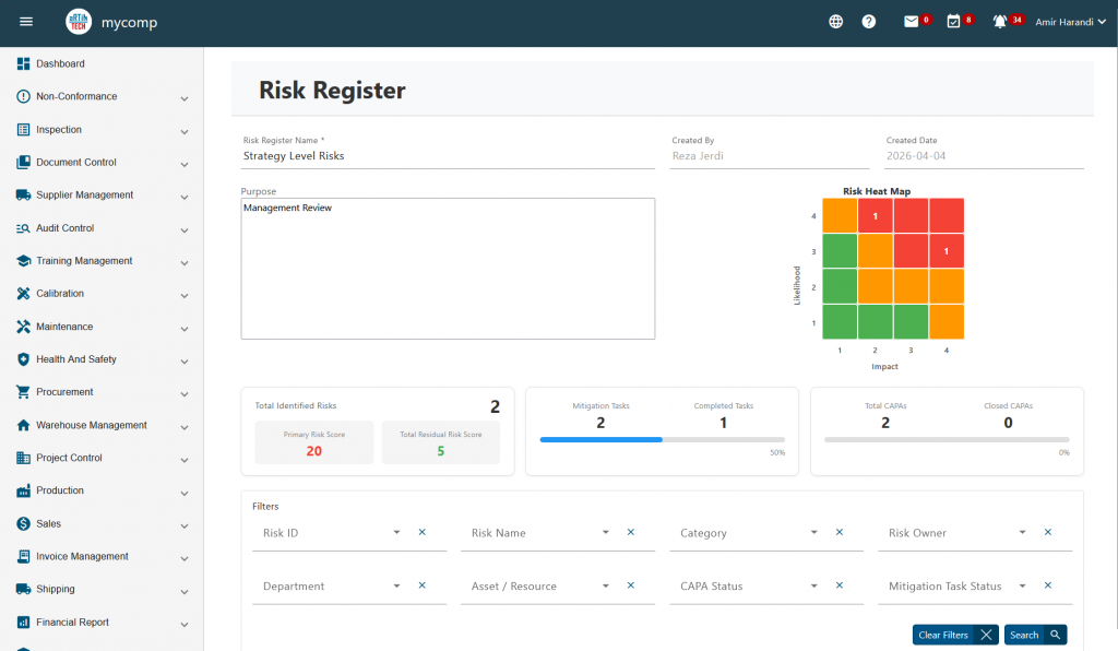 Risk Register Management